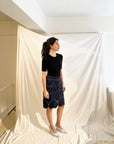 Hand-selected vintage Moschino denim skirt in heart patterns patchwork.
