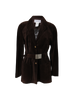 Hand-selected vintage Thierry Mugler brown suede coat with a waist belt.